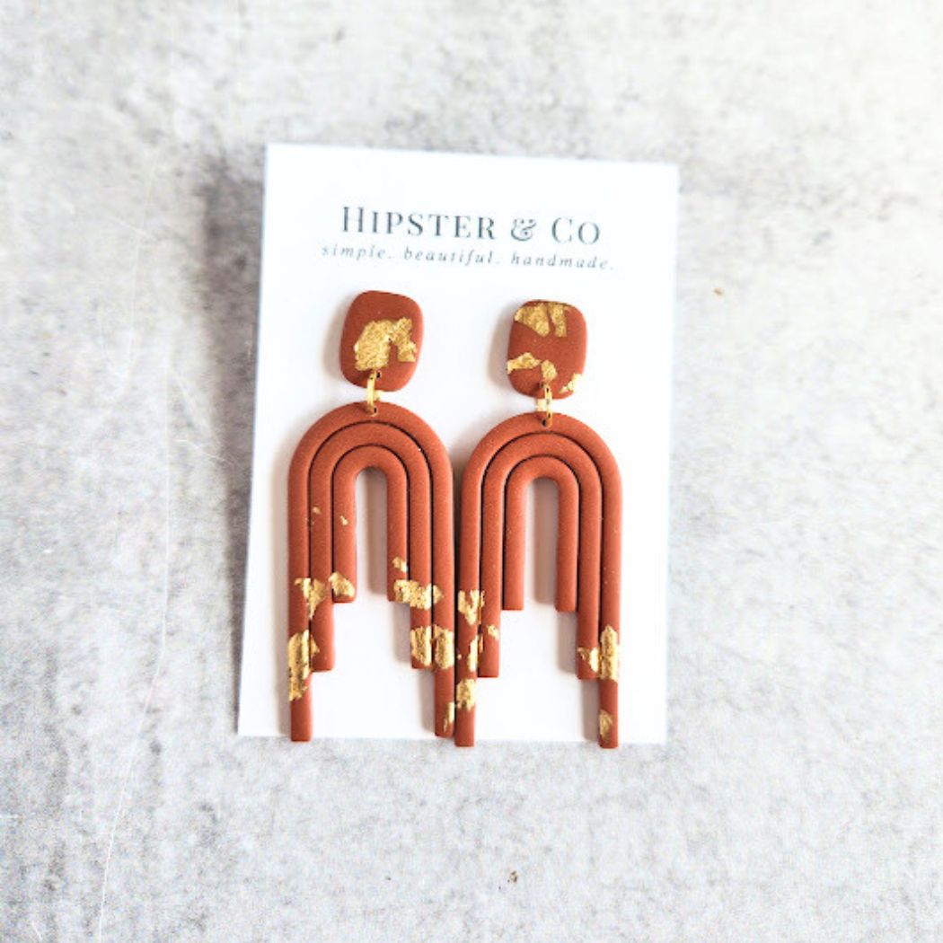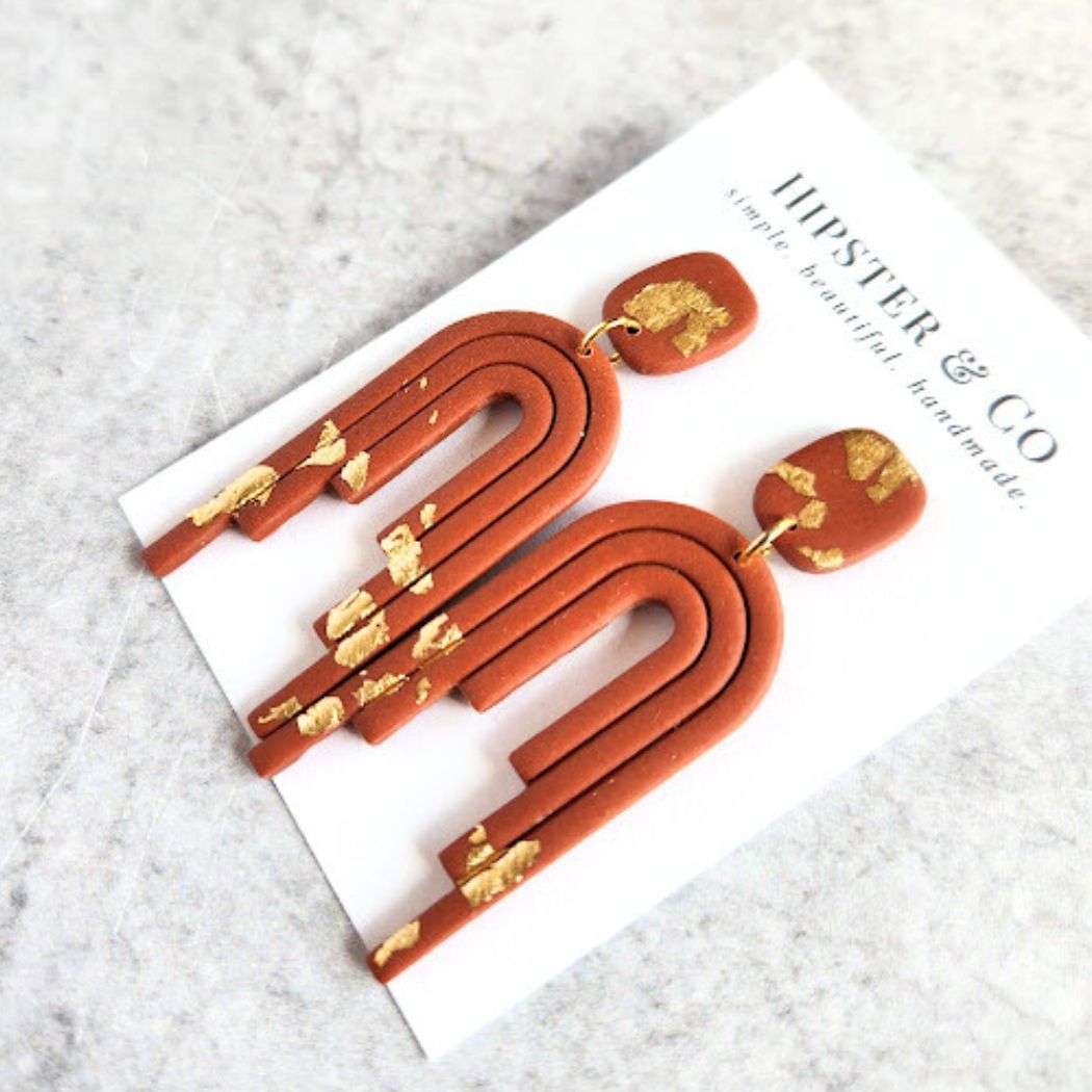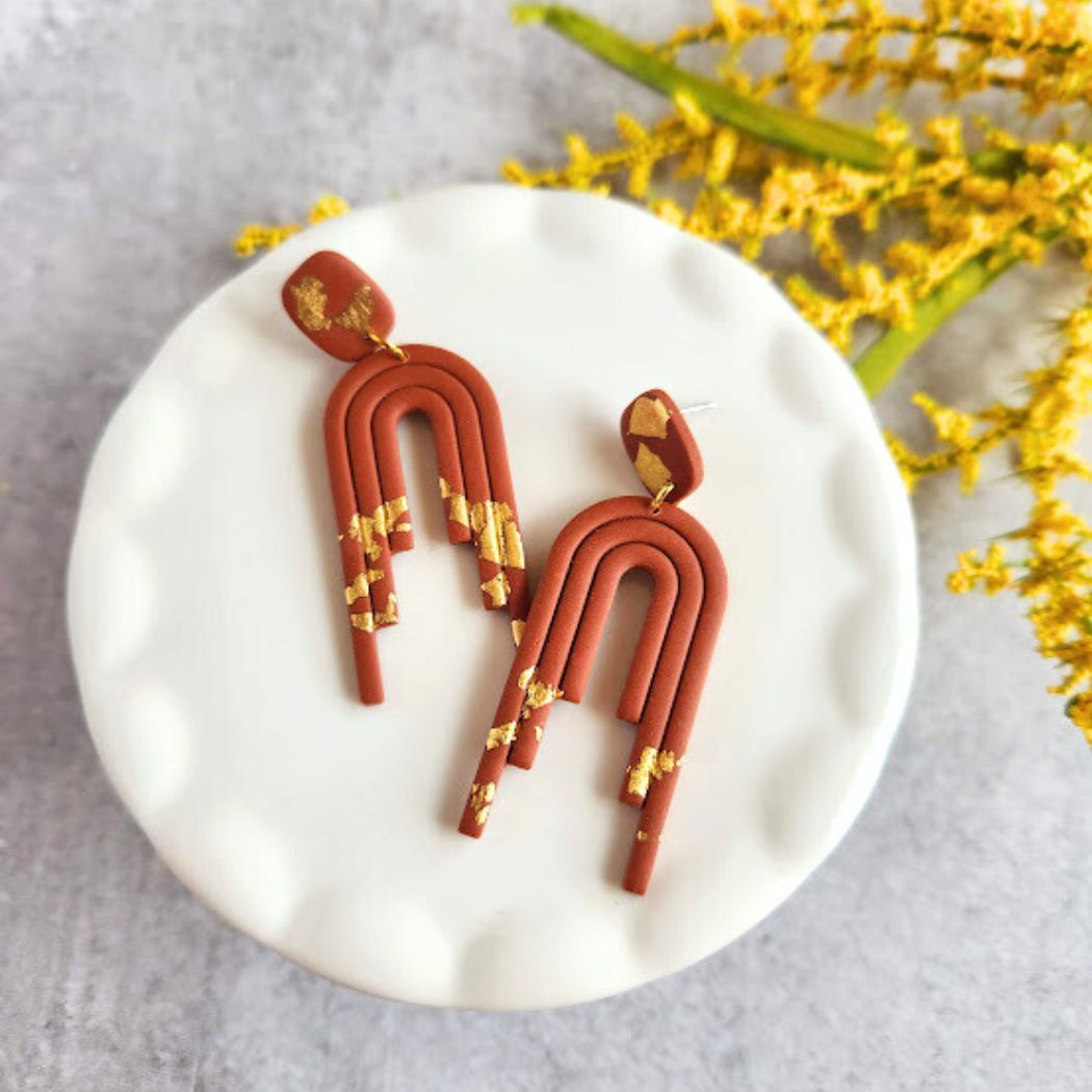 Terracotta and Gold Polymer Clay Dangle Earrings