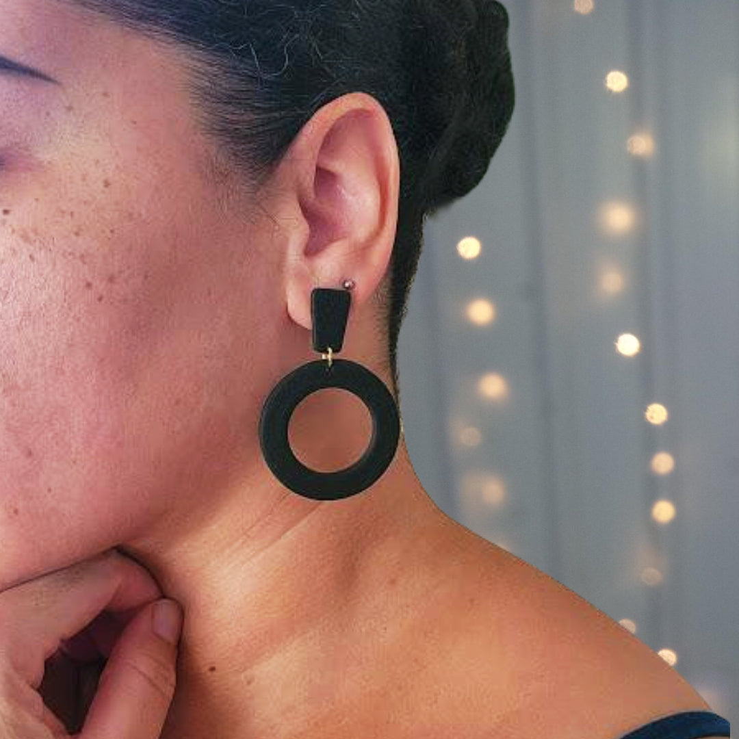 These lightweight earrings make for a fun statement accessory. The Kens earrings are handmade in small batches with a simple textured pink clay. The stainless steel earring posts are glued on and coated with resin at the base of the posts for a super strong hold.