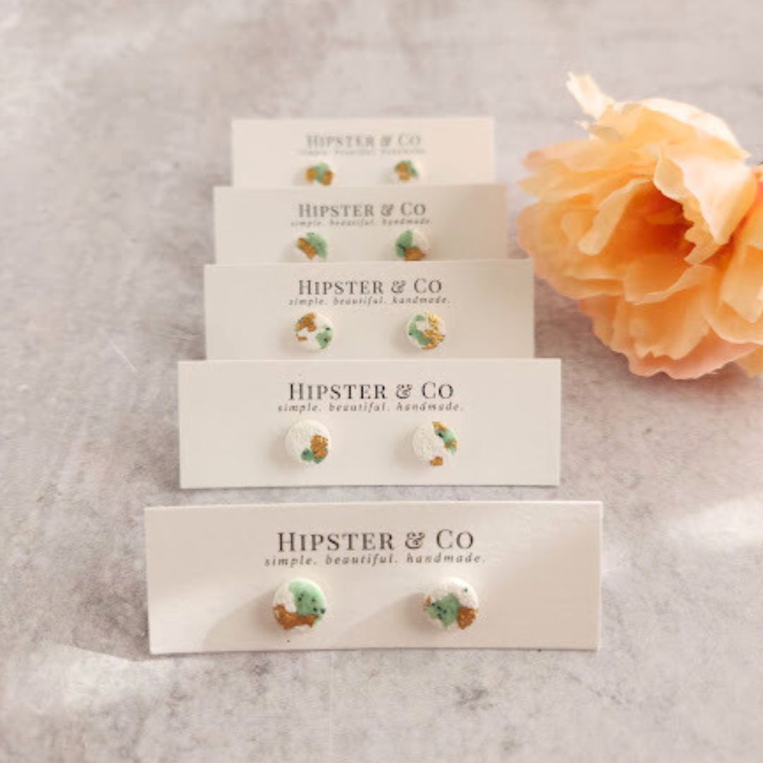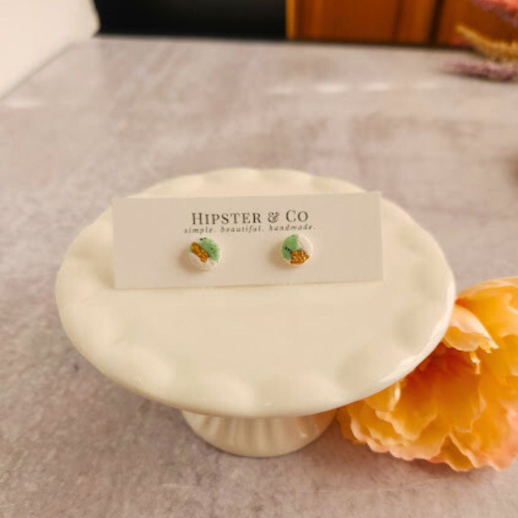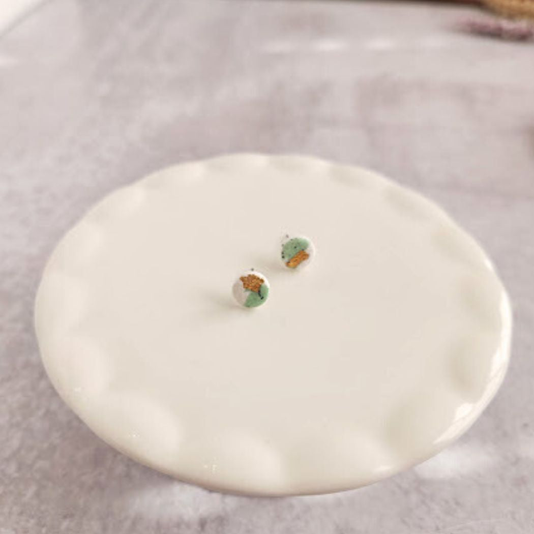 White and Green Mini Round Stud Earrings